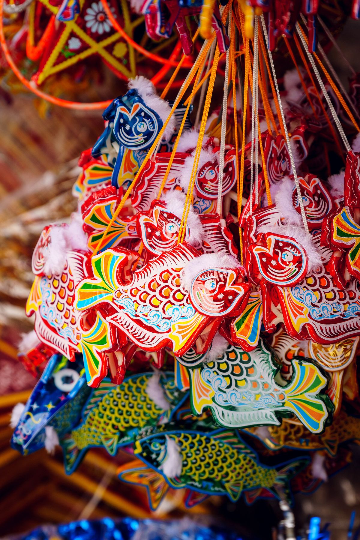 Sử dụng các loại đèn ông sao, đèn cá chép, đèn lồng giấy màu sắc treo quanh khu vực sảnh hoặc hành lang.