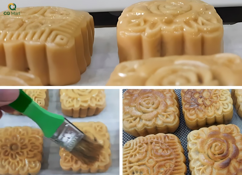 - Để bánh nguội rồi dùng cọ quét một lớp hỗn hợp trứng mỏng lên bề mặt bánh rồi nướng bánh ở lần 2 trong vòng 10 phút ở nhiệt độ 170 độ C.